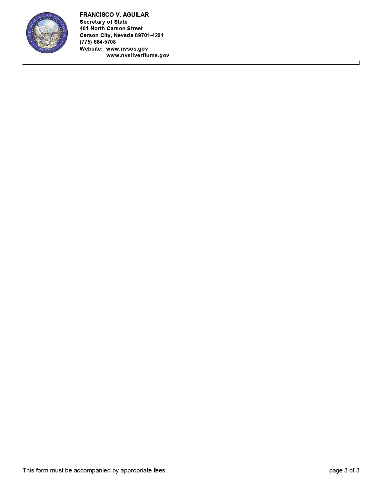FRANCISCO V. AGUILAR Secretary of State 401 North Carson Street Carson City, Nevada 89701 - 4201 (775) 684 - 5708 Website: www.nvsos.gov www.nvsilverflume.gov This form must be accompanied by appropriate fees. page 3 of 3